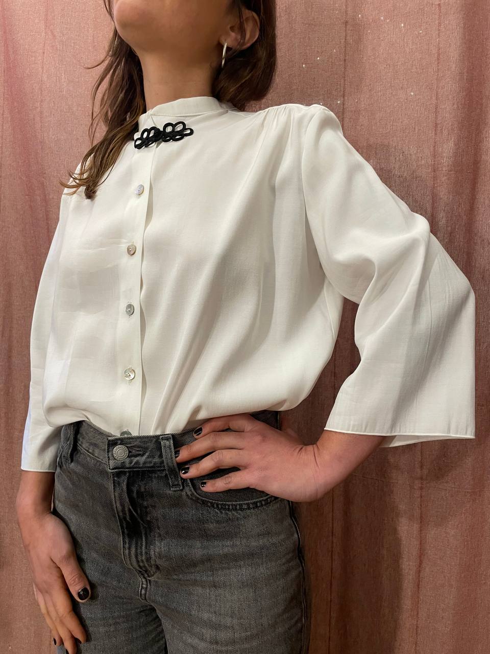 Camicia in seta lavata con colletto coreano