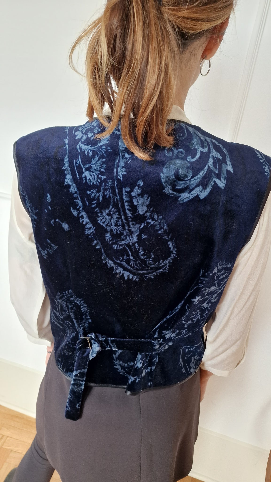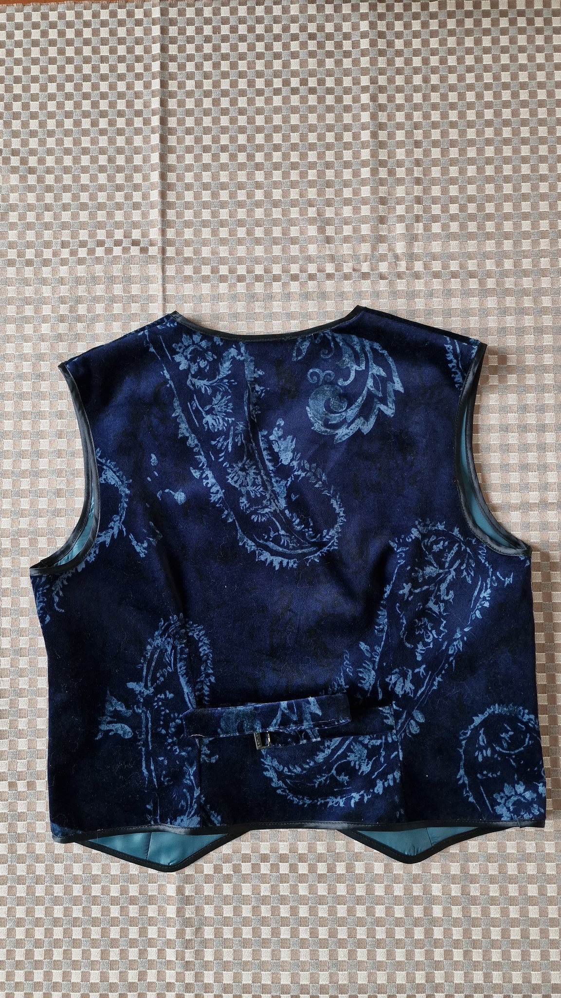 Gilet in velluto blu stampa paisley