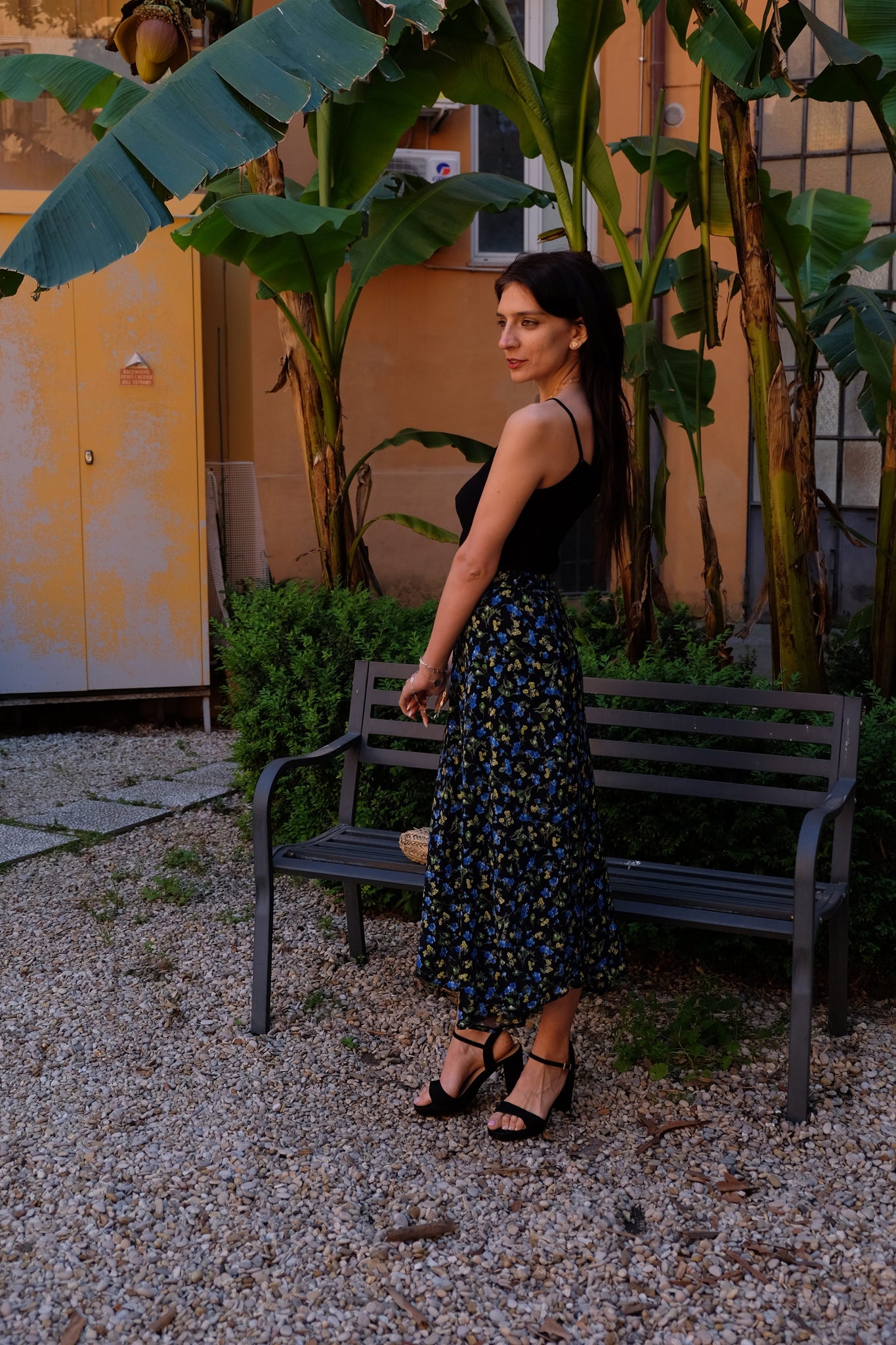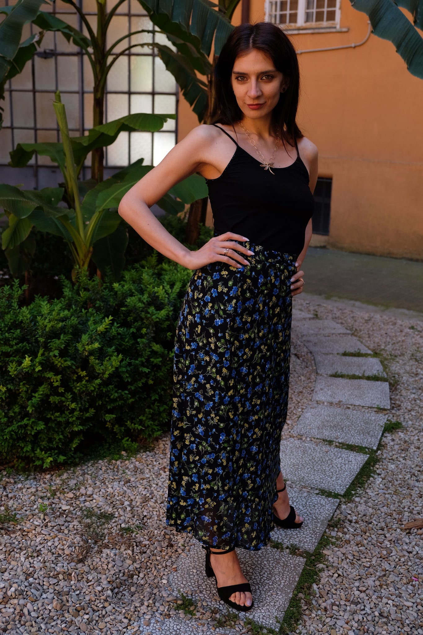 Fantasia floreale sui toni del verde, del giallo e del blu, base nera